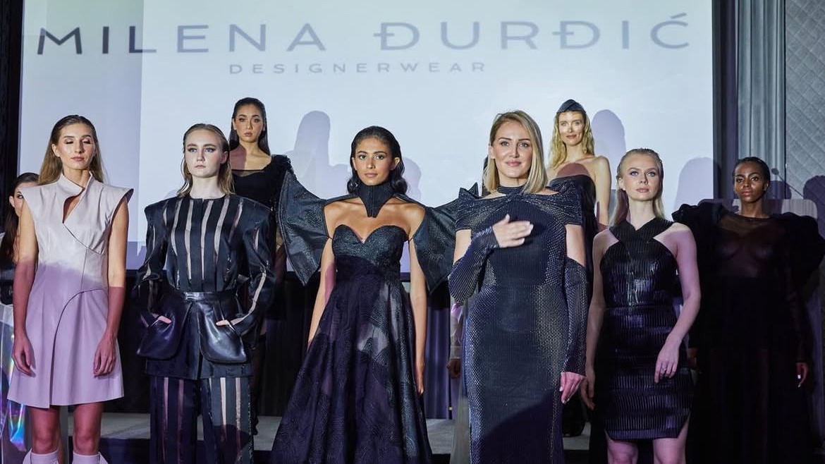 Milena Đurđić je dizajnerka čiji je profesionalni put obilježen disciplinom, predanošću i jasnim autorskim identitetom. Dobitnica je brojnih domaćih i međunarodnih priznanja. Njena zapažena pojavljivanja i angažmani protežu se od Rima i Venecije, uključujući crveni tepih Venecijanskog filmskog festivala, do Dubaija, gdje je na poziv međunarodnih partnera predstavila svoj rad pred visoko profilisanom publikom. Svi ti momenti čine kontekst u kojem nastaje i večerašnja kolekcija, kao logičan, zreo i snažan nastavak njenog stvaralačkog puta.