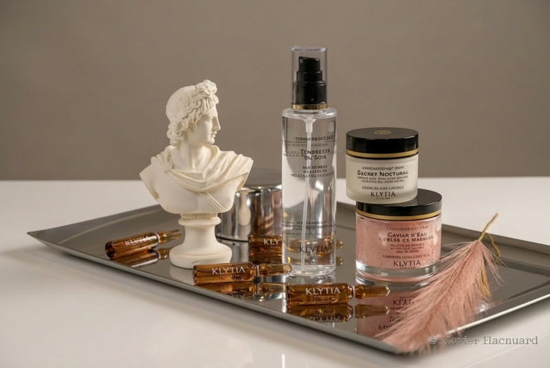 For over 40 years, scientists have been studying chronobiology, the science that reveals how time affects our body and our skin. Morning, evening, or even across the seasons, the skin does not react in the same way. It also evolves throughout a woman’s life, influenced by hormones, stress, pregnancy, and lifestyle. That is why KLYTIA has chosen to base its approach on this research, creating skincare that respects the natural rhythms of the skin.